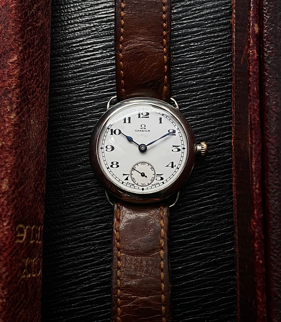 1926 Omega Enamel dial Silver trench style watch Dennison case cal 27.9 SBN